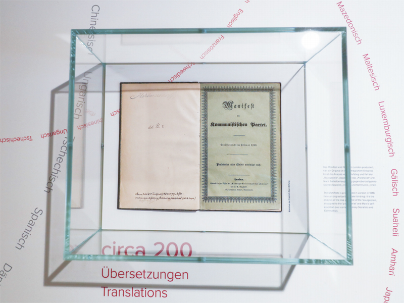 历史长河奔流不息,真理之光穿越时空。1818年5月5日,德国小城特里尔,一代伟人马克思诞生。200多年后,高擎马克思主义的精神火炬,在习近平新时代中国特色社会主义思想指引下,中国共产党正领导亿万人民书写人类发展史上新的奇迹。这是2018年5月3日在德国特里尔马克思故居纪念馆内拍摄的1848年出版的《共产党宣言》第一版。 新华社记者 单宇琦/摄