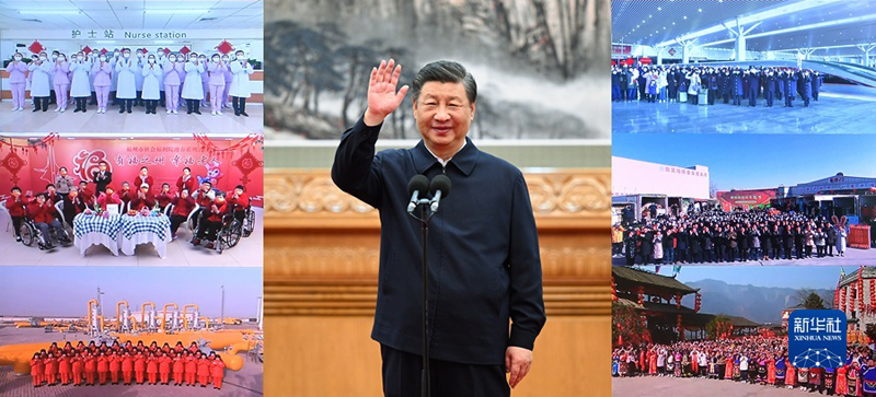 临近春节,神州大地处处洋溢着节日的喜庆气氛。1月18日上午,习近平在人民大会堂东大厅,同黑龙江、福建、新疆、河南、北京、四川等地基层干部群众视频连线,看望慰问防疫一线的医务人员、福利院的老年朋友、能源保供企业的员工、高铁站的干部职工、农产品批发市场的商户和群众、乡村基层的干部群众,给大家送去党中央的关心和慰问。