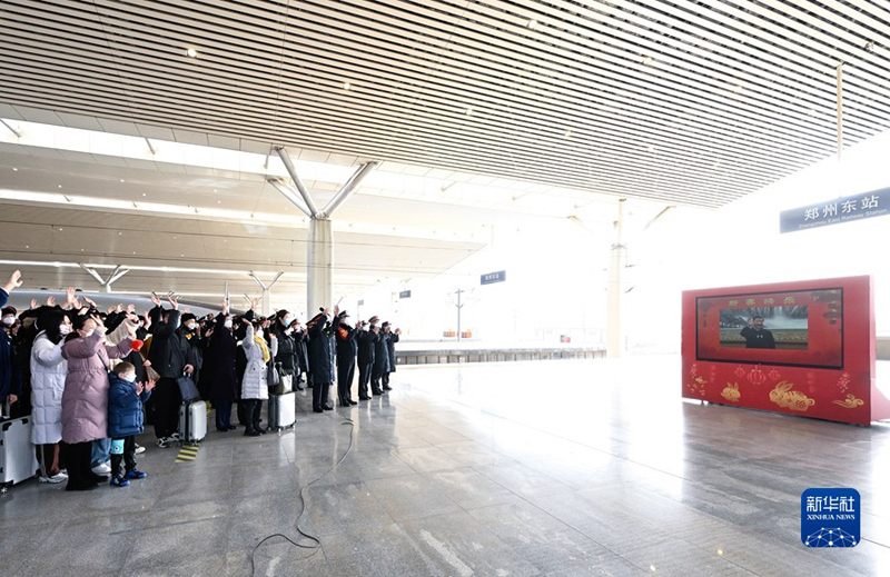 郑州东站是我国最大的高铁站之一,今年春运期间预计旅客发送量337万人。习近平通过视频连线看望慰问铁路客运干部职工。在东站一站台,郑州东站站长汇报车站春运总体情况。习近平又详细询问车站现在每天的客流量是多少?防疫措施落实得怎么样?春运治安采取了哪些措施?嘱咐他们精心组织调度,严守安全底线,确保广大旅客安全出行。月台上的旅客看见总书记,争相赶到镜头前,向总书记问好。习近平亲切询问他们是回家过年还是外出旅游,叮嘱他们注意旅途安全。习近平指出,春运是关系人民群众切身利益、关系经济发展和社会稳定的一件大事。今年春运是疫情防控进入新阶段后的第一个春运,客流量大幅回升。交通运输部门要坚决贯彻落实党中央要求,提升保通保畅能力,确保人民群众平安健康出行,确保重点物资运输畅通有序。要坚持底线思维,加强对极端恶劣天气的监测和预警,深入开展安全隐患排查治理,坚决遏制重特大安全事故发生。要加强对出行相对集中的务工流、学生流的服务引导,确保他们节前安全返乡、节后顺利返岗返校。要严格落实各项防控规定,最大限度降低交叉感染几率,保障旅客身体健康。习近平强调,长期以来,交通运输系统的干部职工埋头苦干,担当奉献,功不可没。春节期间,许多同志要坚守岗位。习近平代表党中央,向交通运输系统的广大干部职工致以新春的祝福,并祝广大旅客旅途顺利。