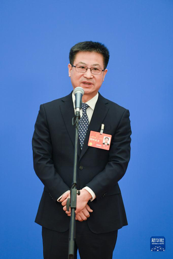 3月12日,第十四届全国人民代表大会第一次会议举行第三场“部长通道”采访活动。这是国家统计局局长康义接受媒体采访。新华社记者 金皓原 摄